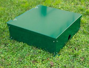 I Copri torrini sono realizzati da quattro resistenti pareti in acciaio con adeguati fori posizionati ad altezza “piano di campagna” per permettere un’adeguata aereazione; mentre ai quattro lati, per facilitare un sicuro ancoraggio al terreno sono stati posizionati i sostegni metallici predisposti di fori, che possono essere utilizzati sia per le zanche e/o eventualmente i tasselli, qualora venisse realizzata una piccola gettatina.